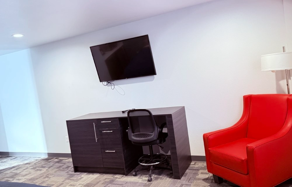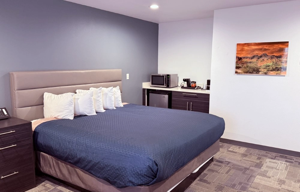 The Standard ADA King Room at Post Time Inn, Carlsbad NM, is designed to provide comfortable, accessible accommodation for every guest. It features a spacious king bed along with ADA-compliant amenities that support ease of movement and convenience throughout the stay. With thoughtful accessibility features and a calm, well-appointed environment, this room ensures a safe and restful experience.