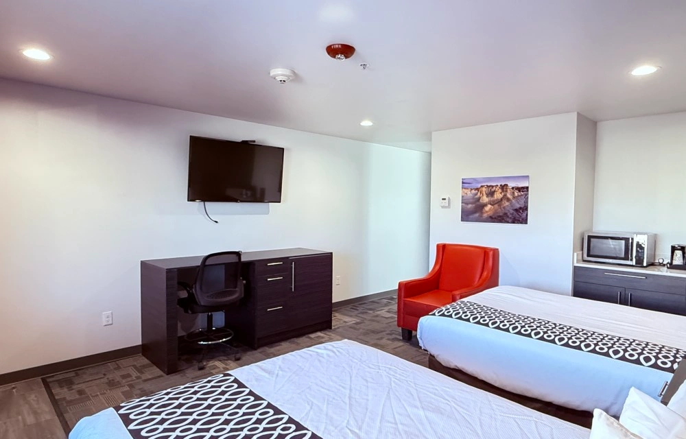 The Standard Two Full Room at Post Time Inn, Carlsbad NM, offers the comfort of two full-size beds, ideal for families or small groups. Designed for convenience and relaxation, the room provides a clean, functional layout for a restful stay. Guests can enjoy a reliable, comfortable environment suited for both short visits and extended travel.
